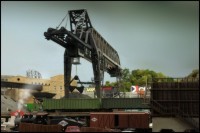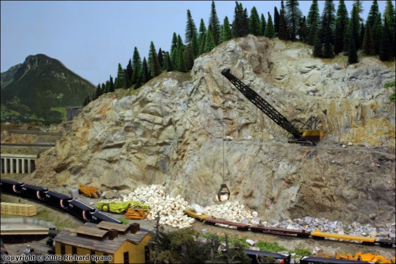 Image 1-9. An operating crane loads stone onto flats at Rick's Rocks near Anachron yard. See the crane in action. |