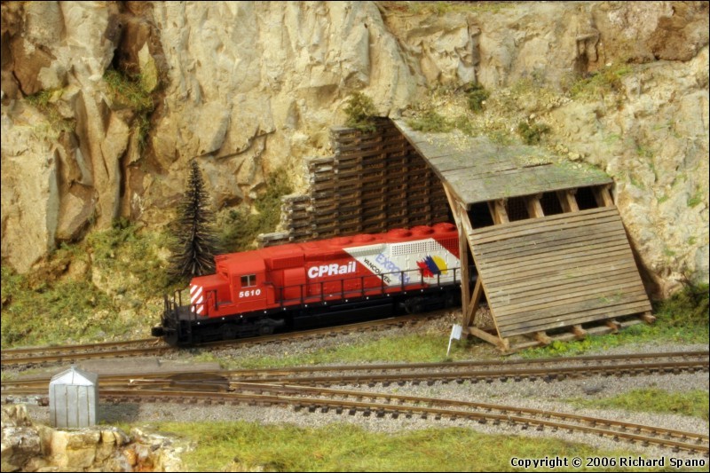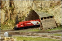 Image 1-7. CP Rail bearing an Expo Special scheme emerges from the snow shed near George's Gorge. |