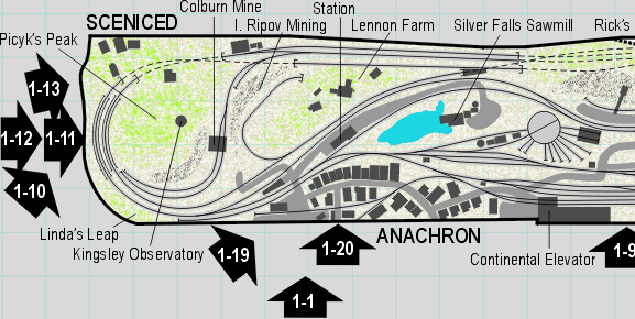 Image 1-19. A CP Rail train stretches the length of the town of Anachron. |